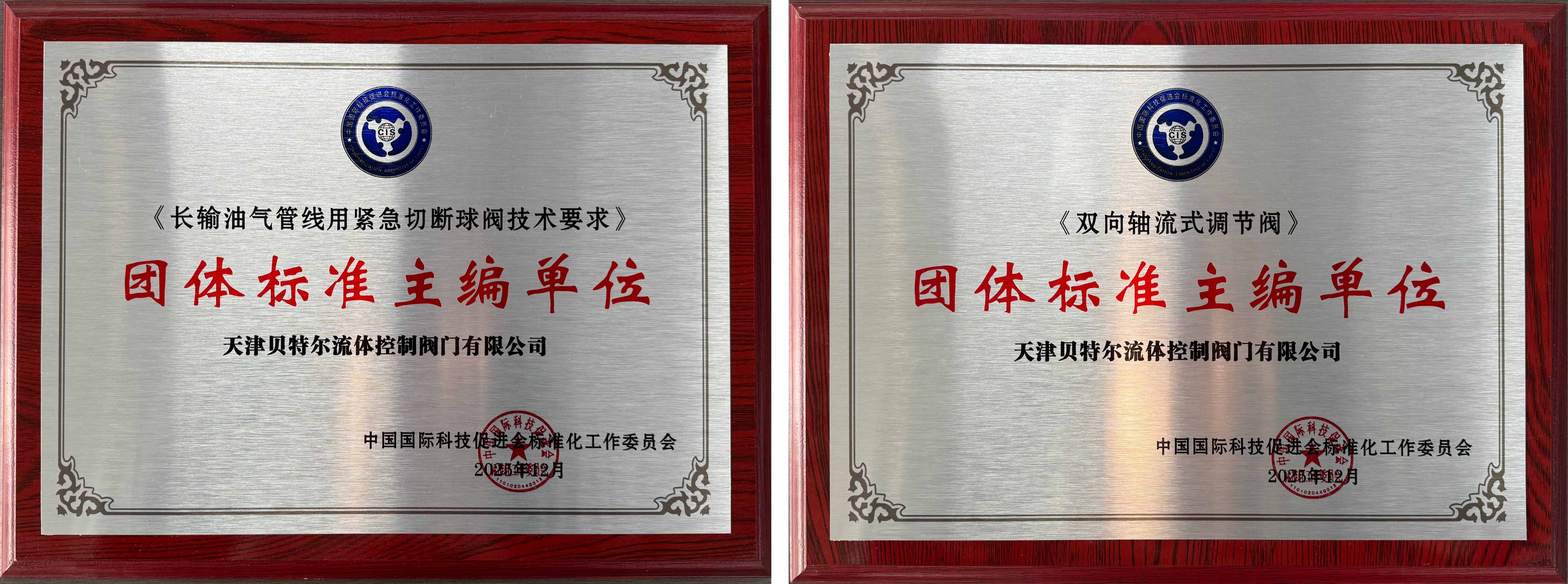 继近期发布的贝特尔参编的六项国家标准后,由贝特尔公司主编的机械行业标准 JB/T 15217-2025《轴流式调节阀》、团体标准 T/CI 1302-2025《双向轴流式调节阀》 T/CI 1312-2025《长输油气管线用紧急切断球阀技术要求》,及参编团体标准T/CIEP 0410-2025《高压氢气用管线阀门技术规范》、T/CIEP 0411-2025《低温液氢用管线阀门技术规范》、T/CAMETA 001089-2025《熔盐用阀门技术规范》正式发布,并已陆续实施。